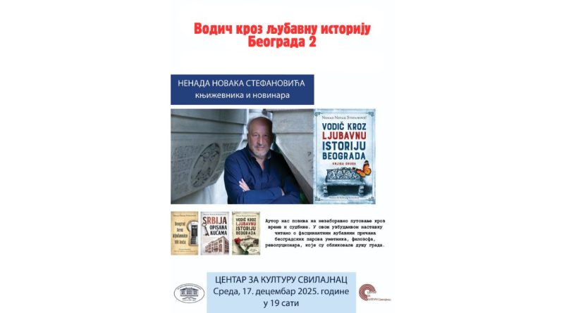 У уторак, 17. децембра, са почетком у 19.00 часова, у Центру за културу Свилајнац биће одржано књижевно вече посвећено Београду, његовим љубавима, тајнама и судбинама.