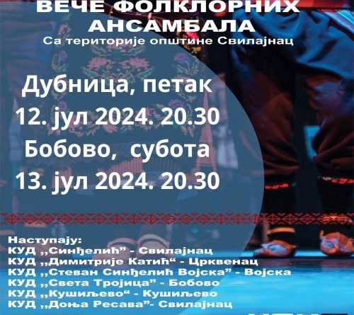 Read MoreОве недеље почиње и Културно лето по селима општине Свилајнац! Вече фолклорних ансабала ове недеље биће одржано у петак 12.