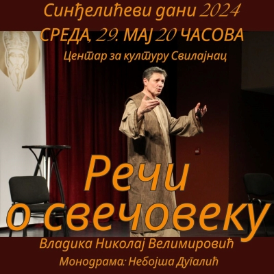 Read MoreУ оквиру манифестације Синђелићеви дани, монодрама „Речи о свечовеку“ биће изведена на сцени Центра за културу Свилајнац. Представа је рађена