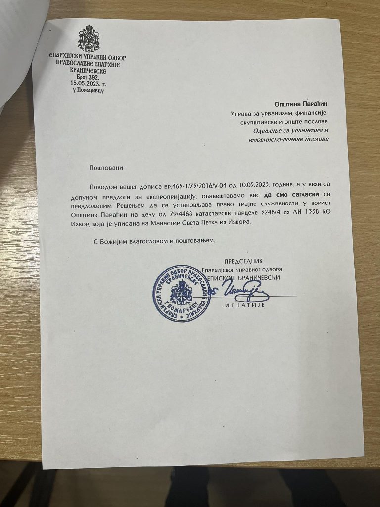 Наиме у претходних месец дана појавили су се наводи да општина Параћин планира да експропријацијом део парцеле на простору изворишта у овиру манастира Света Петка присвоји.