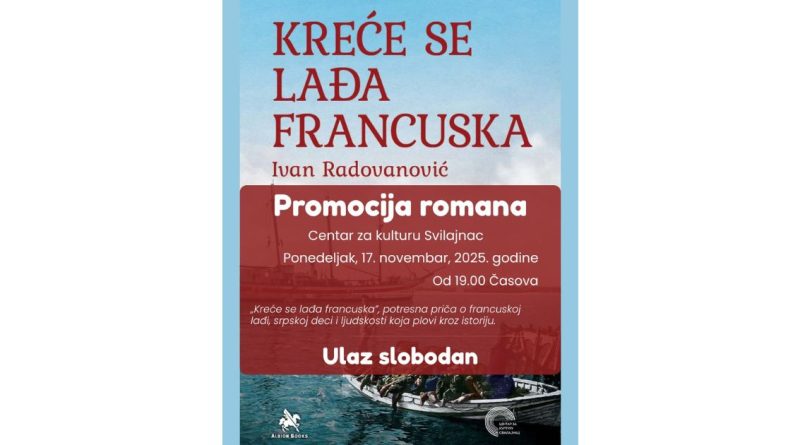 У Центру за културу Свилајнац 17. новембра 2025. године у 19 часова биће представљен нови роман „Креће се лађа француска” аутора Ивана Радовановића, у издању Албион букса (ALBION BOOKS). Улаз је слободан.