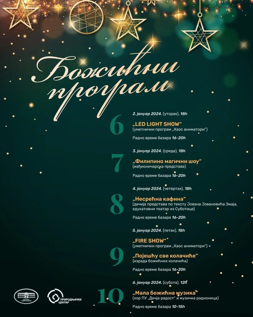 Ова празнична манифестација доноси широк спектар забавних садржаја за све узрасте, стварајући прилику за заједничко уживање у празничној атмосфери. Посетиоци ће имати прилику да прошетају кроз шарене тезге, уживају у укусним посластицама, пронађу оригиналне поклоне за своје најближе и проведу време у веселом друштву.