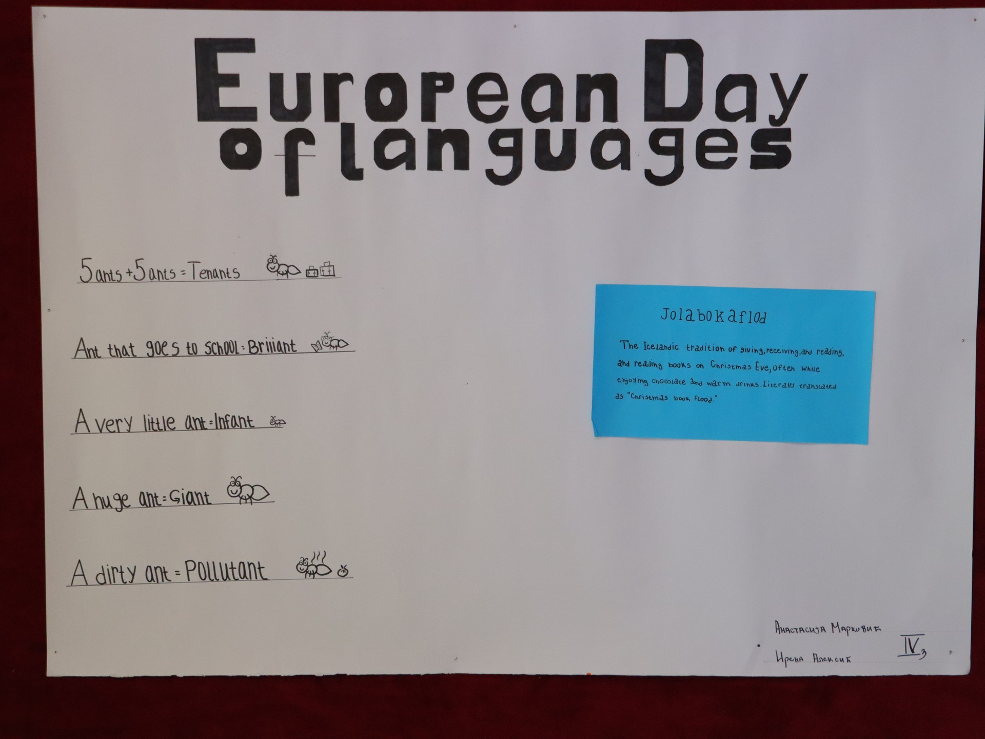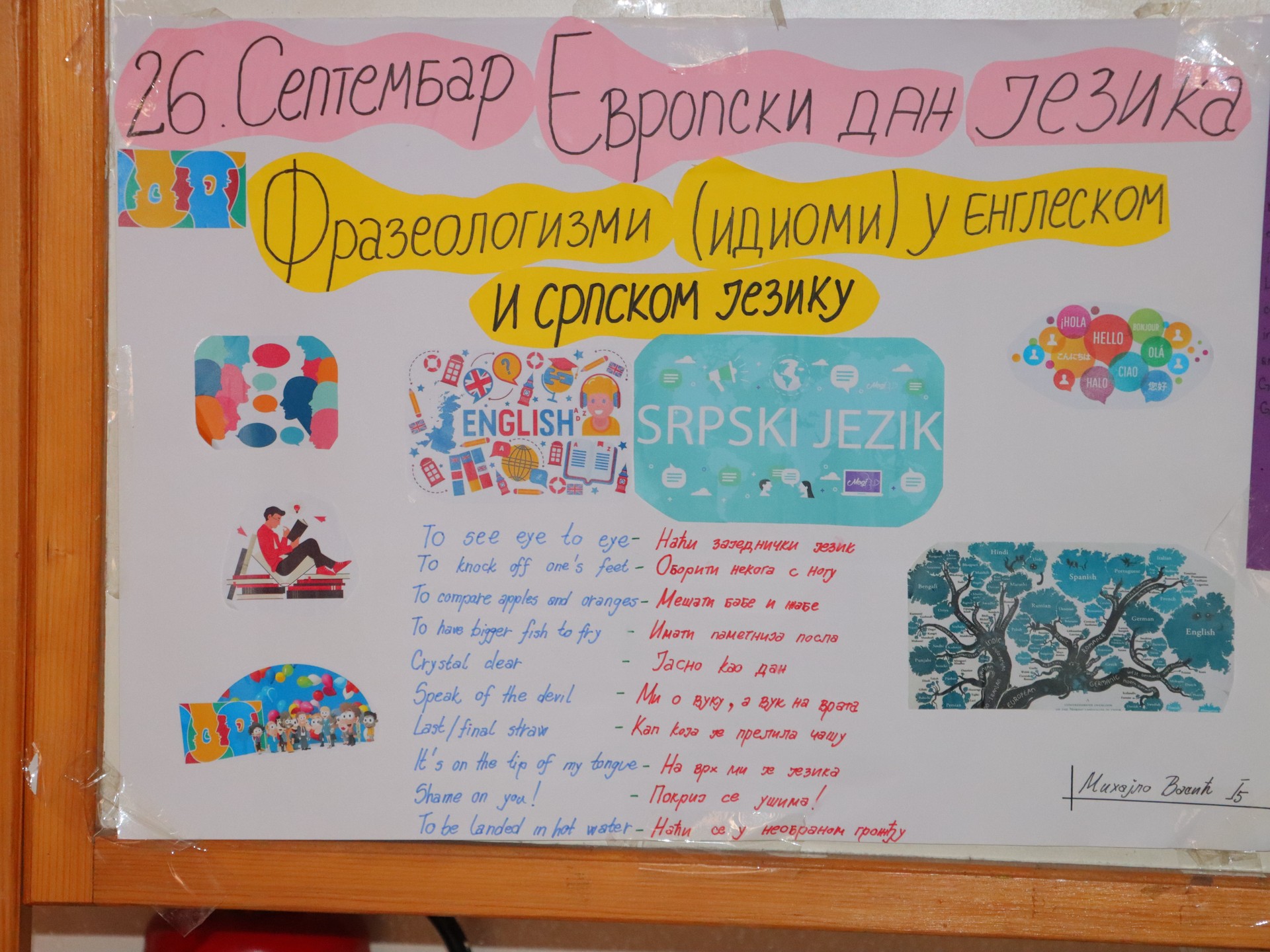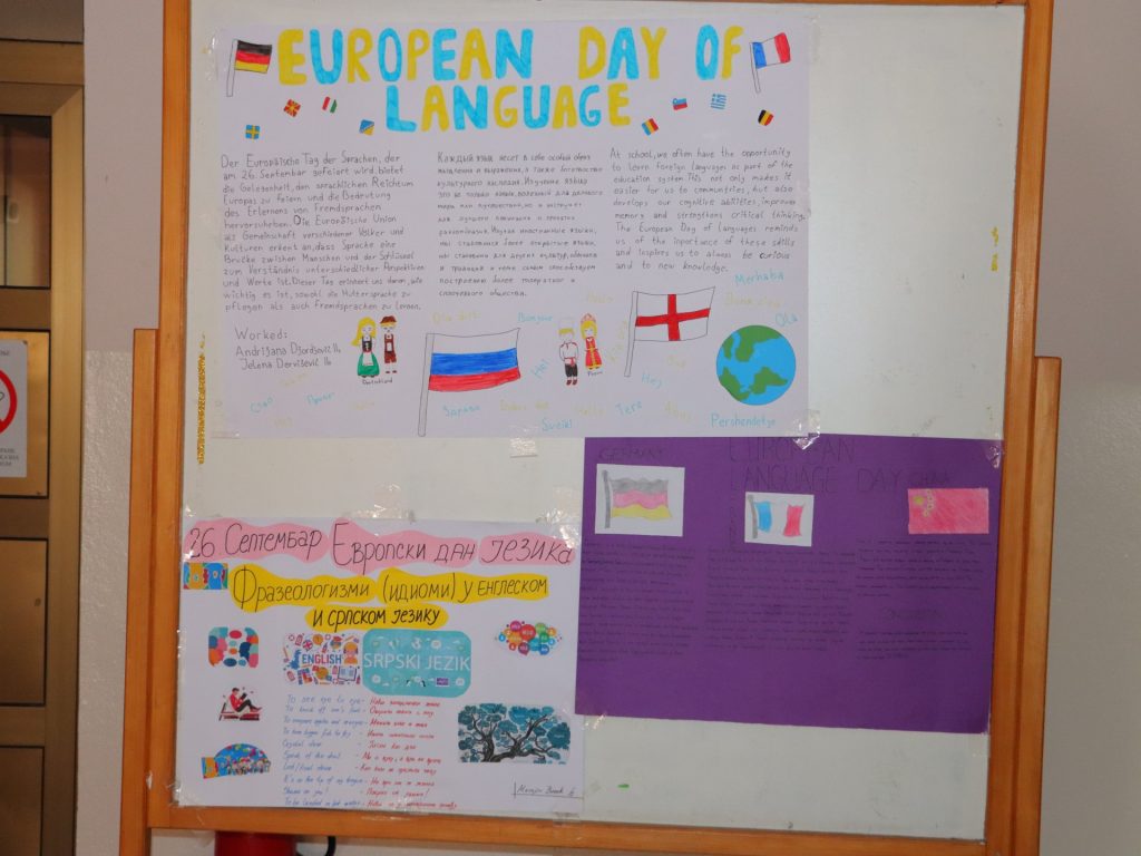 Ученици су такође упоредили фразеологизме (идиоме) у енглеском и српском језику, истраживали порекло руског и норвешког језика, чиме су додатно обогатили школске паное занимљивим информацијама.
