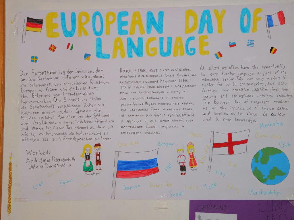 Под вођством наставнице Анице Вујчић Павловић, као и колегиница Снежане Којадиновић и Ирене Микарић, уз подршку библиотекарки Лидије Недељковић и Милене Радосављевић, ученици су припремили креативне презентације на тему Европског дана језика и његовог значаја. Учесници су се посебно потрудили да представе занимљиве аспекте језика, укључујући латинске реченице, шаљиве изразе на енглеском језику са речју „мрав“ (ант), као и објашњење исландске речи за традицију даривања поклона и читања књига уз топли напитак на Бадње вече.