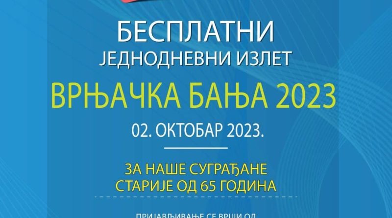 Свилајнац – У оквиру иницијативе „Свилајнчани на првом месту,“ Општина Свилајнац спроводи још један од својих програма подршке пензионерима и старијим суграђанима. Од 11. до 22. септембра 2023. године, пензионери и грађани старији од 65 година који поседују свилајначку картицу имају прилику да се пријаве за бесплатни једнодневни излет у Врњачку бању.