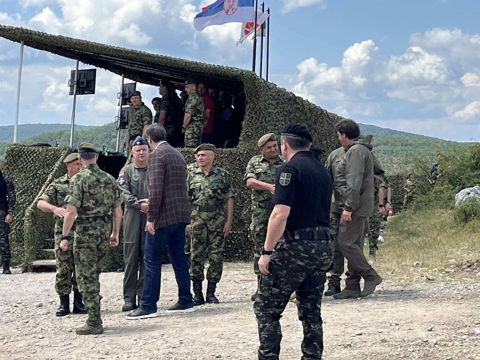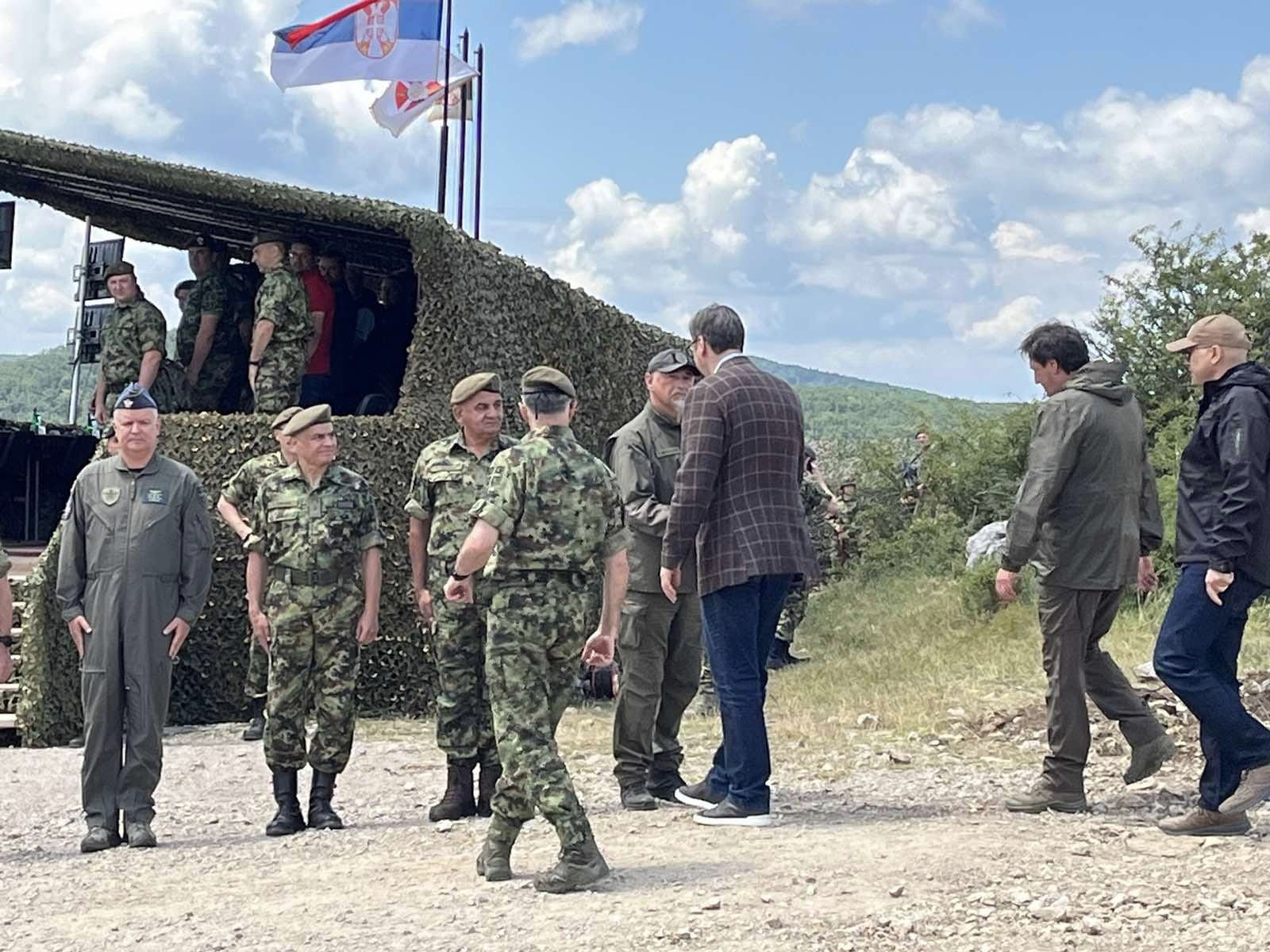 Председник Републике Србије Александар Вучић присуствује Дану високих званица на опитној здруженој тактичкој вежби с бојевим гађањем „Ватрени удар 2024“, која је започела тачно у подне на Пасуљанским ливадама.