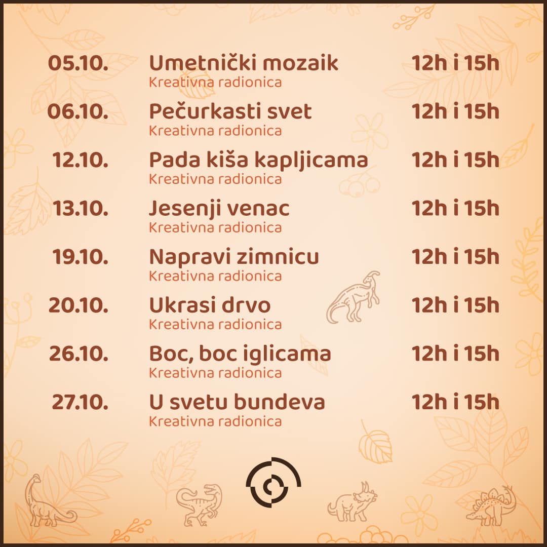 Природњачки Центар Србије у Свилајнцу припремио је богат октобарски програм пун занимљивих активности и радионица за све узрасте. Током предстојећих викенда посетиоци ће имати прилику да уживају у различитим едукативним садржајима, креативним радионицама и узбудљивим интерактивним изложбама.