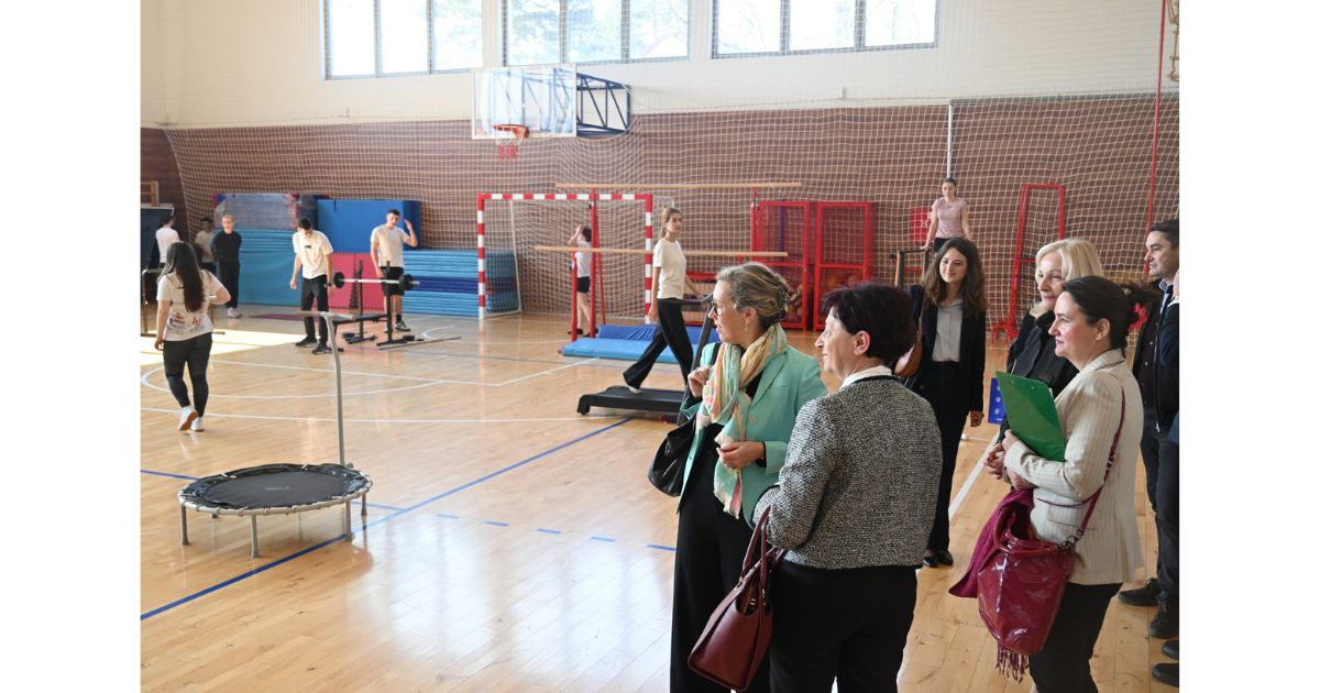 Током посете најпре је обишла Средњу школу у Свилајнцу, где су јој представљени резултати пројекта „Еко општина“, који је посвећен очувању животне средине и подстицању еколошке свести међу младима. У оквиру овог пројекта школи је уручена и донација француског спортског бренда „Декатлон“, која се састоји од спортске опреме намењене ученицима.