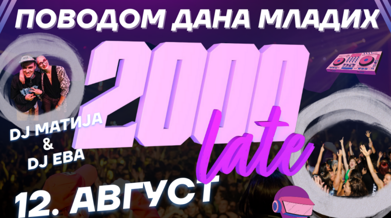 Уочи 12. августа, Међународног дана младих, Канцеларија за младе Ћуприје организује бесплатан концерт за младе, 2000LATE. Уз Канцеларију за младе, организацију концерта су подржали и општина Ћуприја, Удружење младих Ћуприје и спортски центар ‘Ада’.